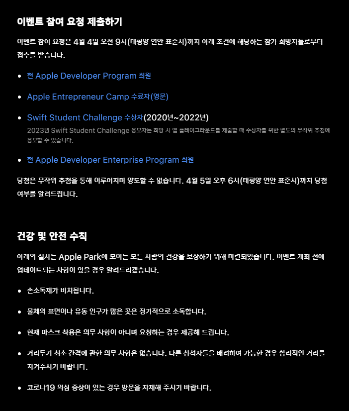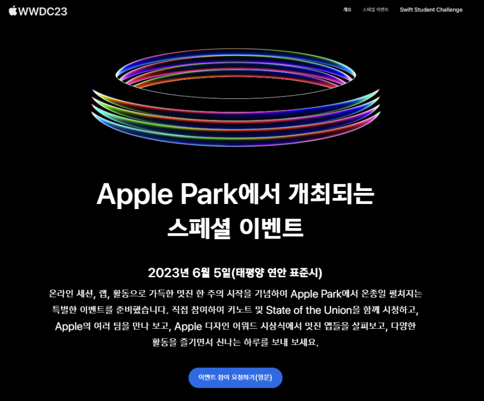 애플은 오늘 연례 행사인 세계 개발자 회의 WWDC23을 오는 6월 5일부터 9일까지 온라인 포맷으로 개최한다고 발표했습니다. 개최일에는 애플 파크에서 개발자 및 학생들을 위한 특별 대면 행사까지 마련한다고 밝혔는데요. 참가자들은 기조연설과 함께 State of the Union 비디오를 시청하고 애플 디자인 어워드에 참석합니다.