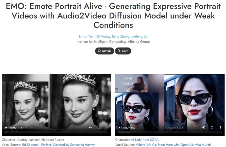 EMO는 사용자가 인물/캐릭터 이미지와 오디오를 함께 입력하면 →
