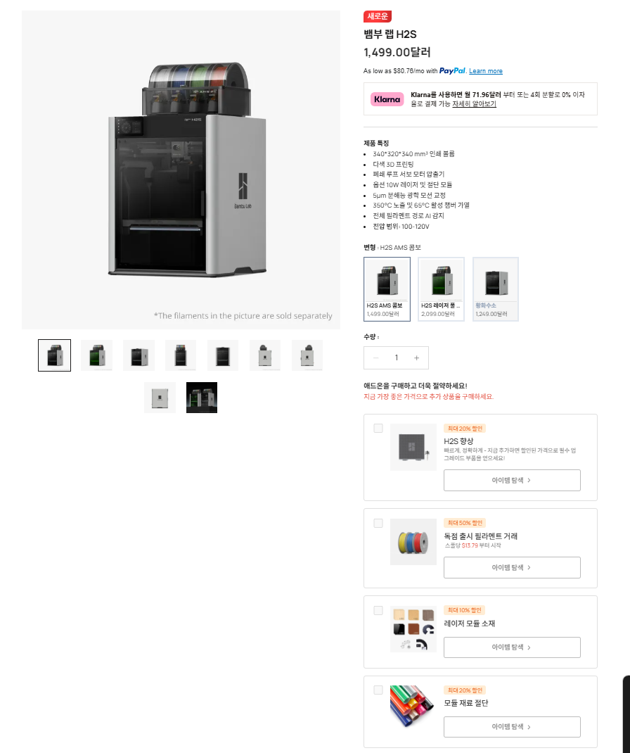 가정용중에 최상급 양산형모델입니다 H2D보다 개선되어 나와서 H2D사신분들은 배아플거 같습니다