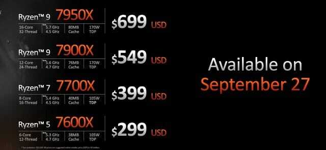 가격은 AMD 라이젠 5 7600X가 299달러, 7700X가 399달러, 7900X가 549달러,