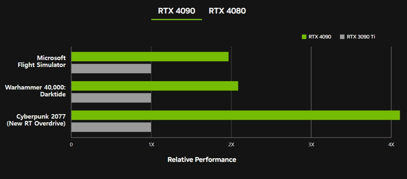 NVIDIA GeForce RTX 4090과 4080의 성능 (4K 해상도, DLSS 활성화)
